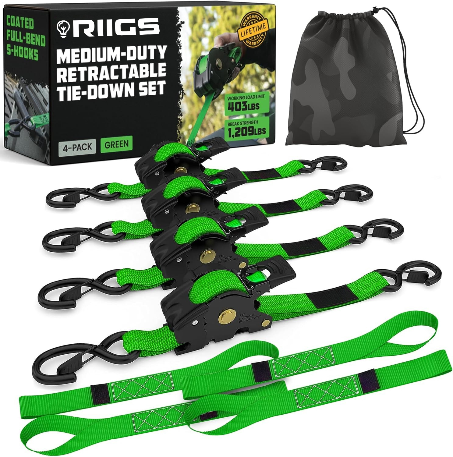 Enter RIIGS Auto-Retractable Ratchet Straps — the fast, clean, self-resetting tie-down system built for people who actually haul things.